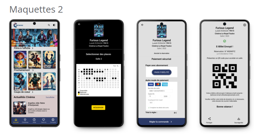 Conception d’une application mobile pour offrir une expérience de réservation de billets de cinéma rapide et simple, ciblant à la fois les cinéphiles assidus et les spectateurs occasionnels.
